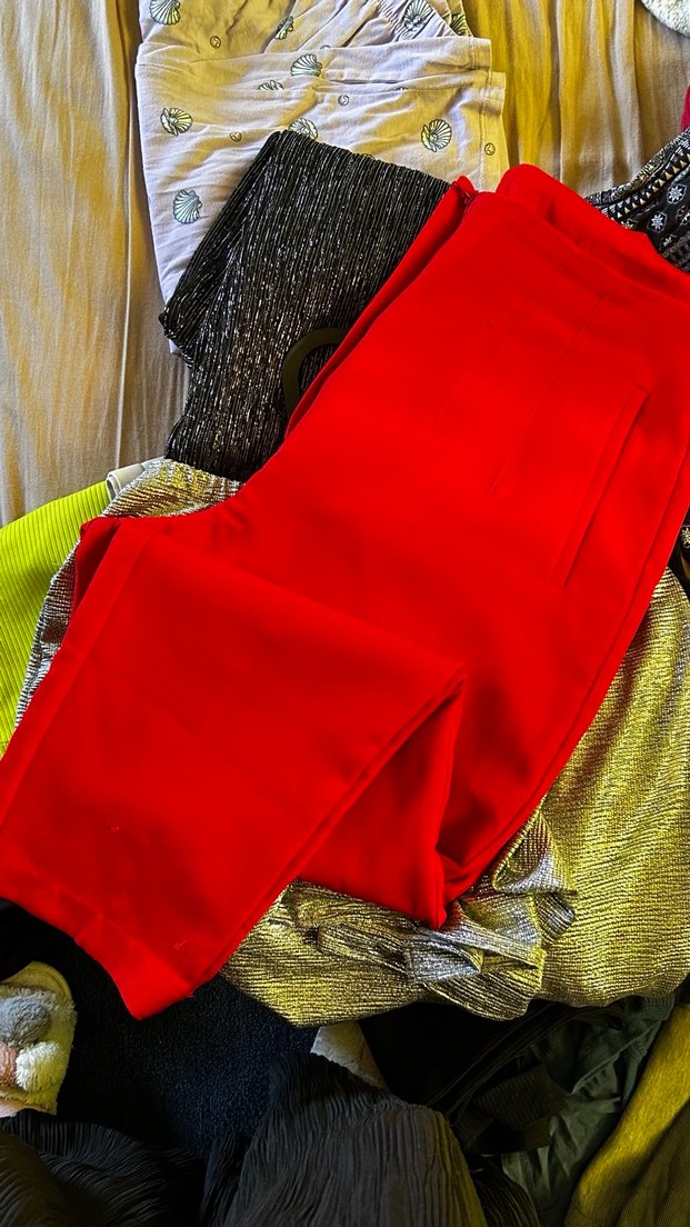 Kırmızı Fermuarlı Kadın Kumaş Pantolon