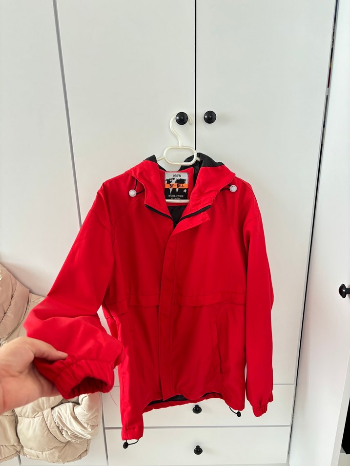 Kırmızı, parlak görünümlü, fermuarlı, uzun kollu, notched lapel yakalı, orta boy kadın ceketi. Rahat ve sıcak tutan kumaştan üretilmiştir. Kar montu diye geçiyor kışın sonunda aldık giymedim hiç