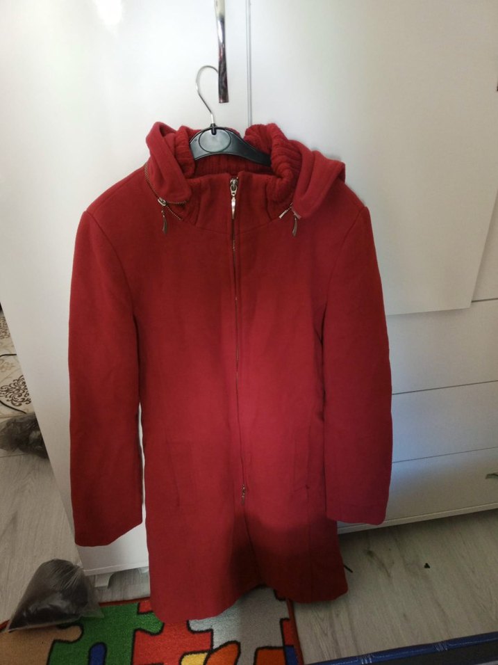 Kırmızı Fermuarlı Kadın Midi Kaban