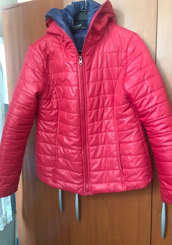 Fermuarlı, kapşonlu parlak kırmızı renkli, oturan kesim kadın mont. Notch yaka ve yumuşak, sıcak kumaştan yapılmıştır, günlük kullanım için uygundur.