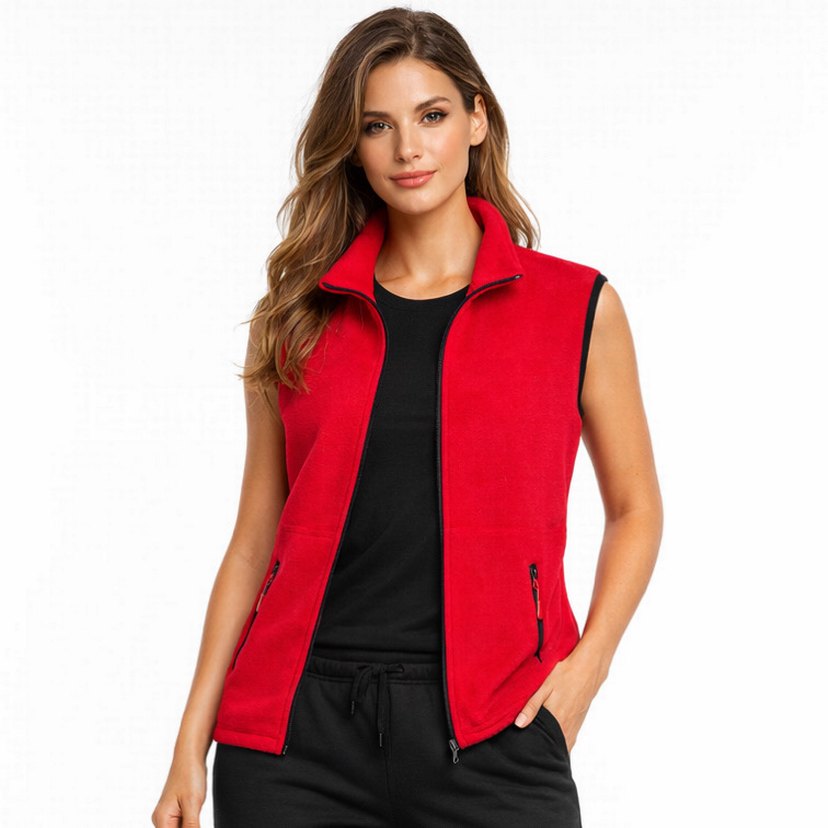 Kırmızı Fermuarlı Kadın Polar Spor Yelek