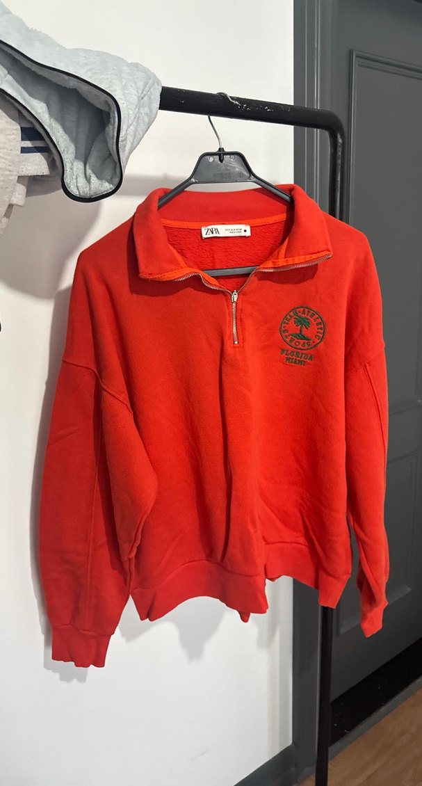 Kırmızı Fermuarlı Kadın Sweatshirt