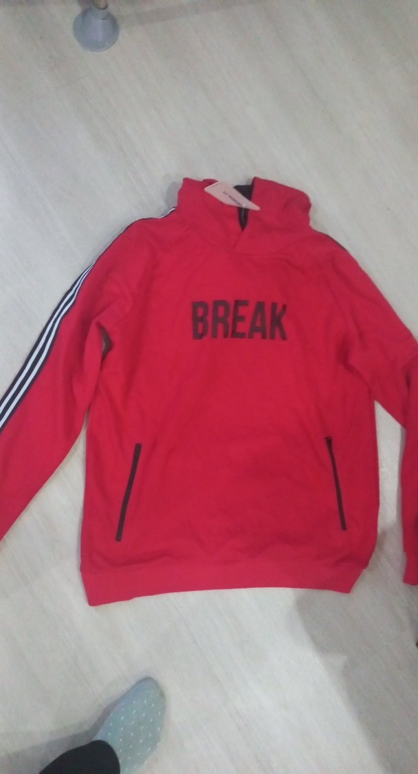 Kırmızı renkli, uzun kollu, fermuarlı cepli ve baskılı BREAK yazılı sweatshirt. Salaş kesim ve bisiklet yaka detayına sahiptir. ♀️