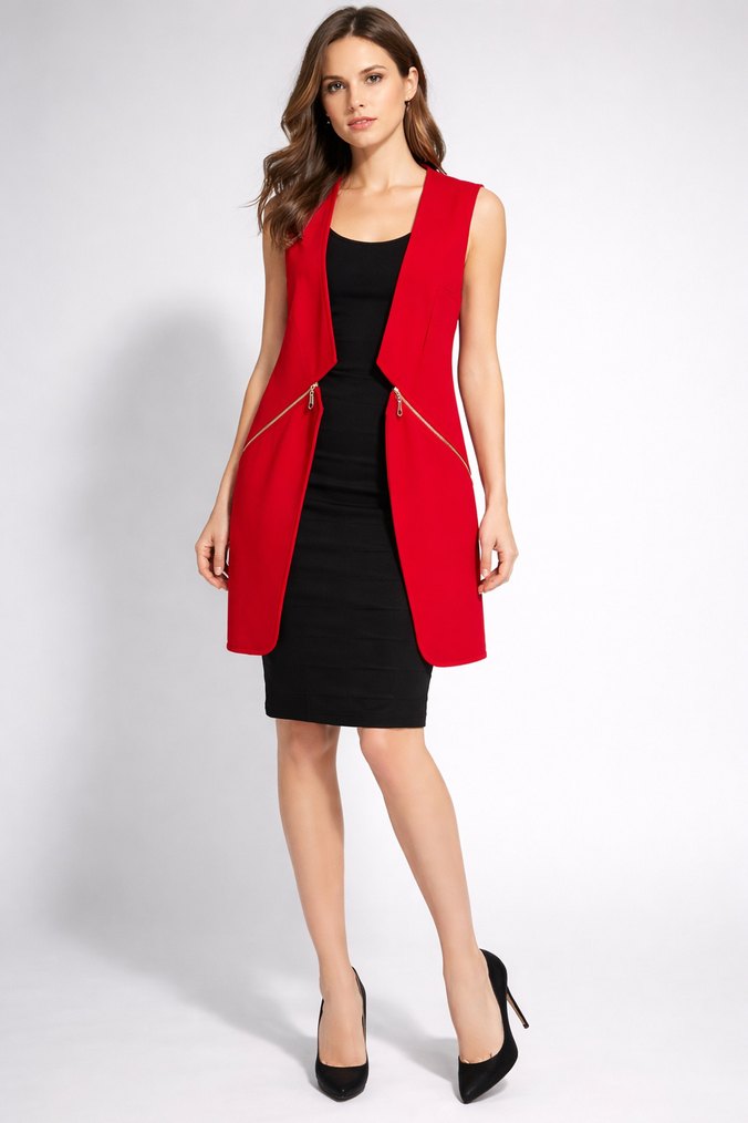 Kırmızı Fermuarlı Kolsuz Kalem Elbise