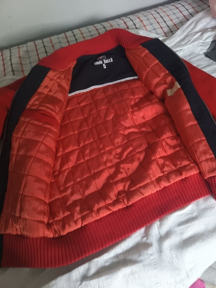 Bu montu, yüksek yakalı ve uzun kollu olup, yumuşak ve sıcak kumaştan yapılmıştır. Parlak kırmızı renkte, fermuarlı ve rahat normal boydadır.