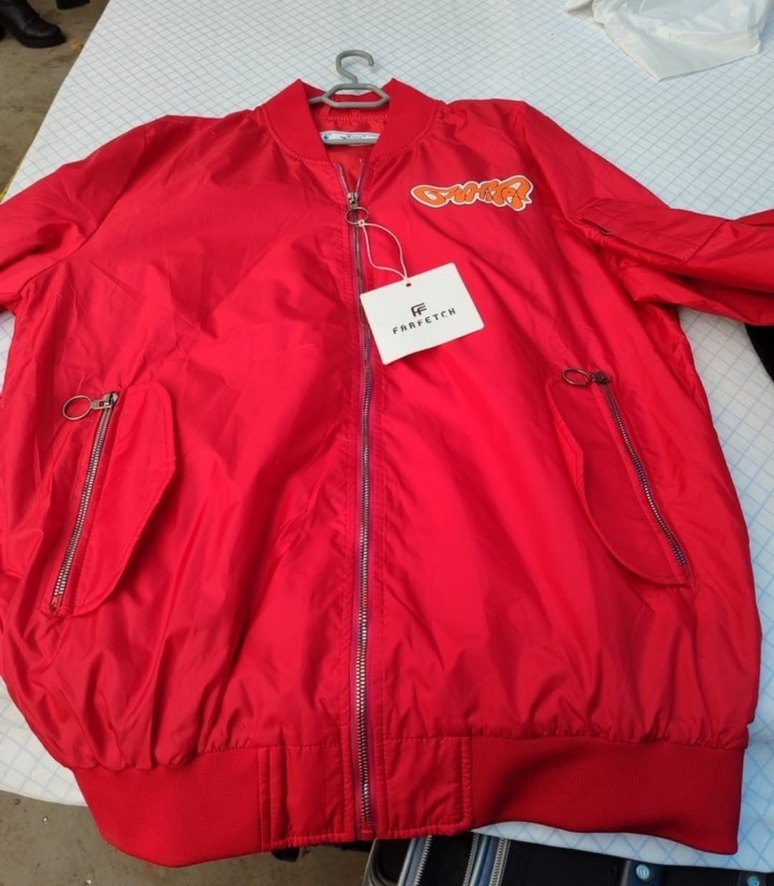 Parlak kırmızı renkli, fermuarlı, rahat kesim kadın ceket. Uzun kollu, bisiklet yaka ve normal midi boyda, sentetik kumaştan üretilmiştir. Trendy gündelik tarz için uygundur.