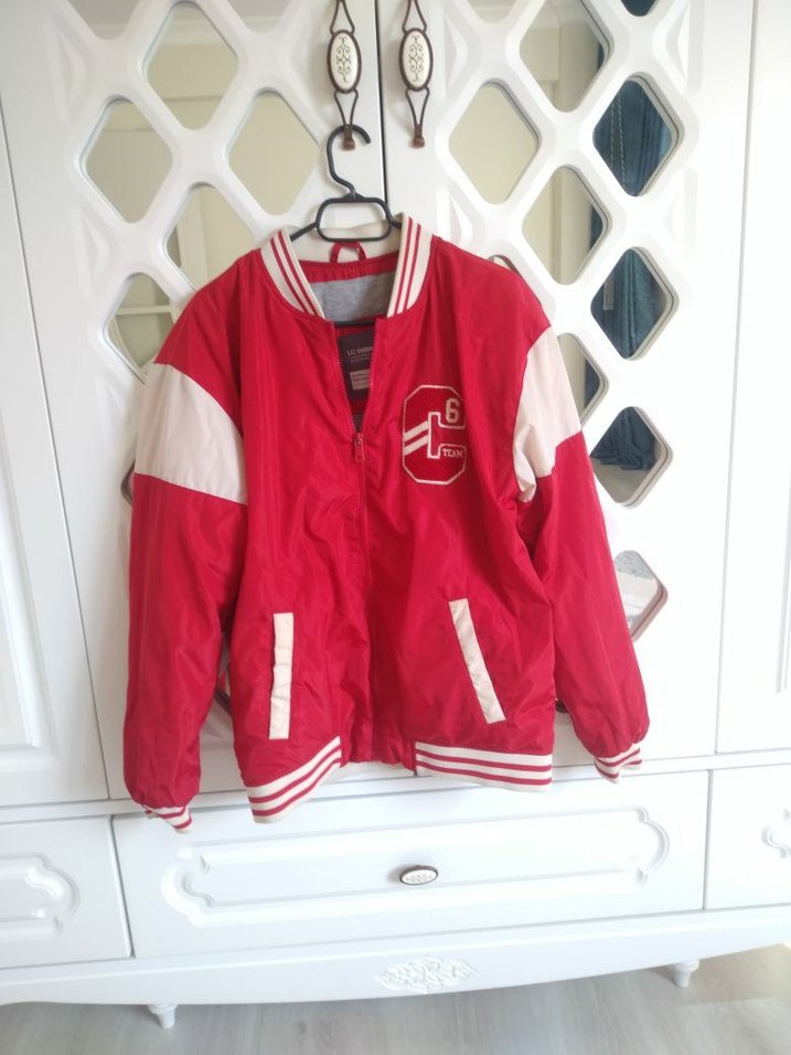 Kırmızı renkli, uzun kollu, yuvarlak yakalı ve bol kesim erkek çocuk ceket. Fermuarlı ön kısmı ve baskılı detaylarıyla yumuşak ve sıcak kumaştan üretilmiştir. Spor şıklığı için uygun.
