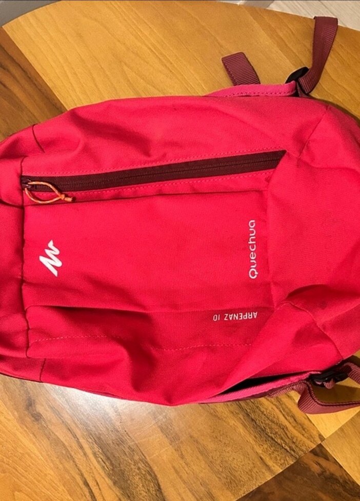 Kırmızı renkli, fermuarlı ön cepli, sentetik kumaştan yapılmış spor ve sokak stili için uygun sırt çantası. Renkli baskılı, sade ve temel tasarımda.