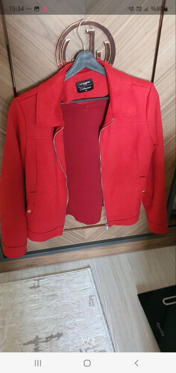 Kırmızı süet kumaştan, fermuarlı, uzun kollu, normal midi boyda, regular fit kadın ceket. Notlu yaka tasarımı ile günlük rahat kullanıma uygundur. ✨