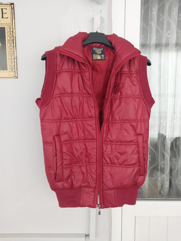 Parlak kırmızı renkte, fermuarlı ve yüksek yakalı, ince kesim unisex yelek. erkek kız giyebilir.