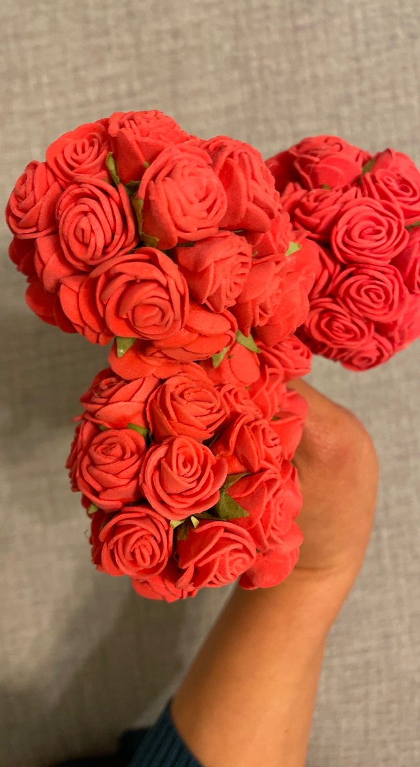 Canlı kırmızı sentetik güller ve fırfır detaylarıyla kadın saç aksesuarı, cesur ve bohem tarzlar için uygundur.