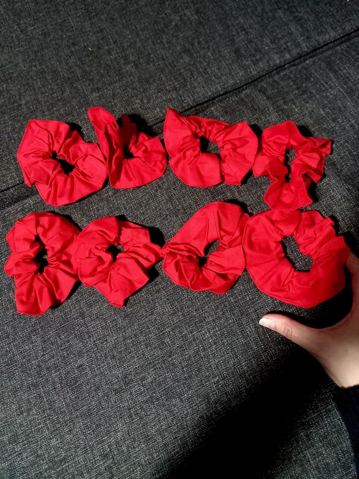Kırmızı Fırfırlı Kadın Saç Tokası Seti 8 li yeni kumaş bez toka