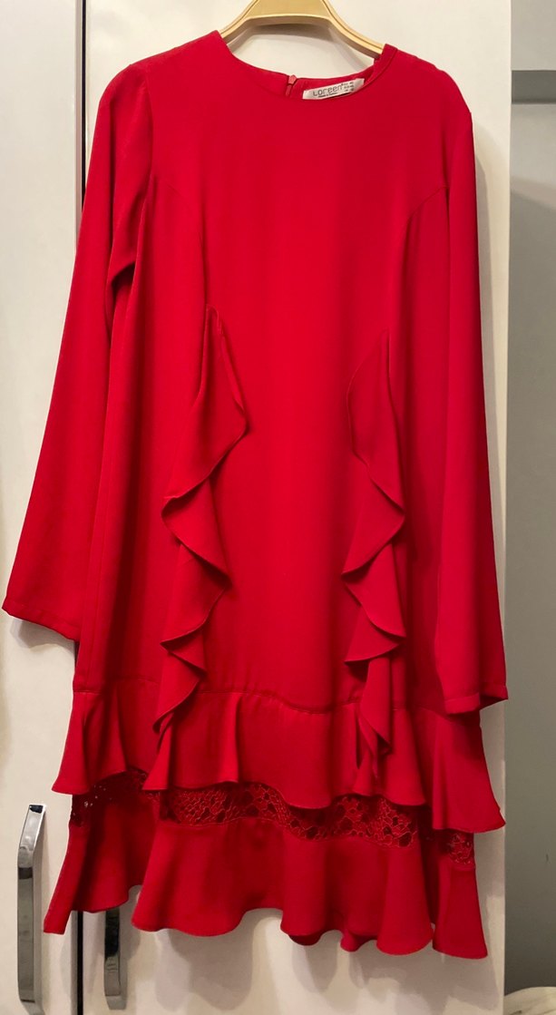 Kırmızı Fırfırlı Kadın Tunik