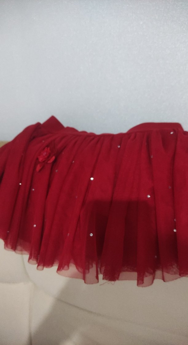 tül astarli kumaştan, kırmizi renkte, fırfırlı 3 4 5 yas kız çocuk eteği. ✨