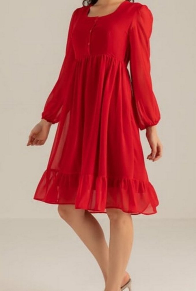 Kırmızı Fırfırlı Midi Kadın Elbise