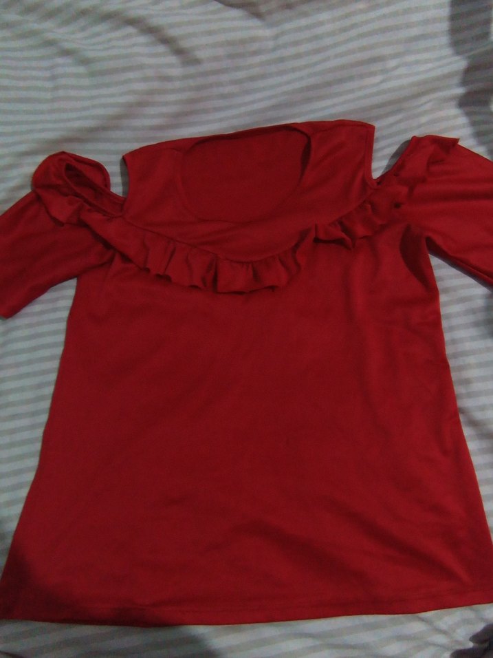 Kırmızı renkli, yumuşak ve sıcak kumaştan üretilmiş, uzun kollu ve fırfırlı detaylı, tek renk bluz. Günlük kullanıma uygun, normal boyda ve dar kesim.