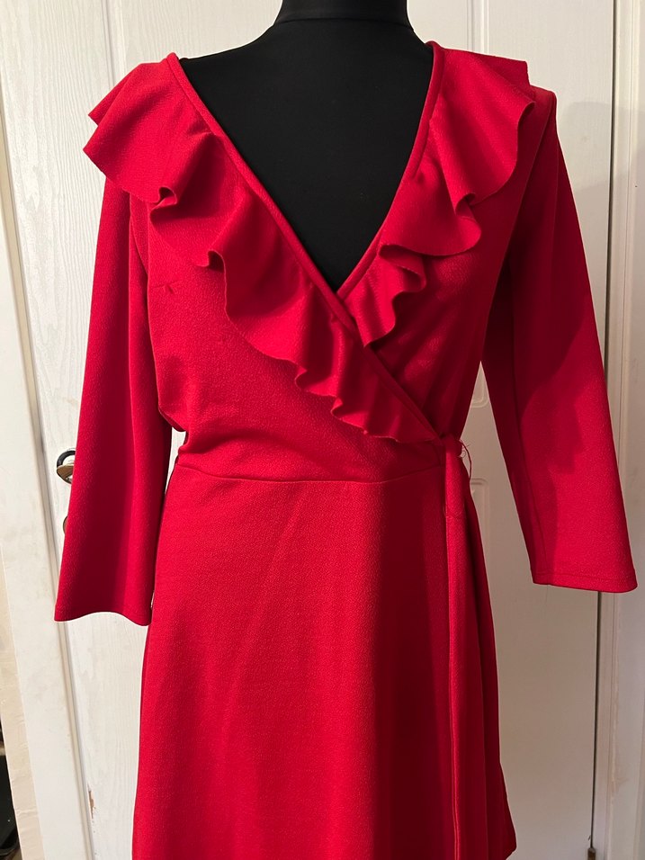 Kırmızı, fitted triko elbise V yakalı ve fırfırlı detaylıdır. Uzun kollu ve uzun boyludur, yumuşak ve sıcak kumaştan yapılmıştır. Cesur, Paris tarzı goth stilini yansıtır. ❤️