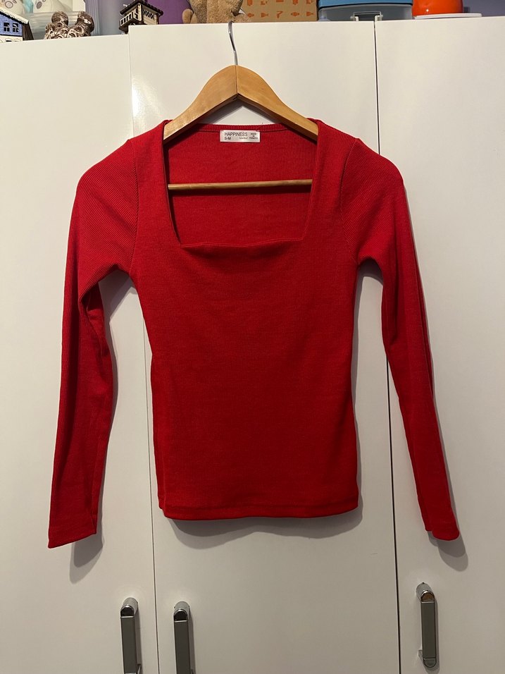 Kırmızı, uzun kollu ve tek renkli, tekne yakalı, günlük sokak stili için rahat ve şık bir kadın bluzudur. Esnektir. S/M bedenlere uygundur.