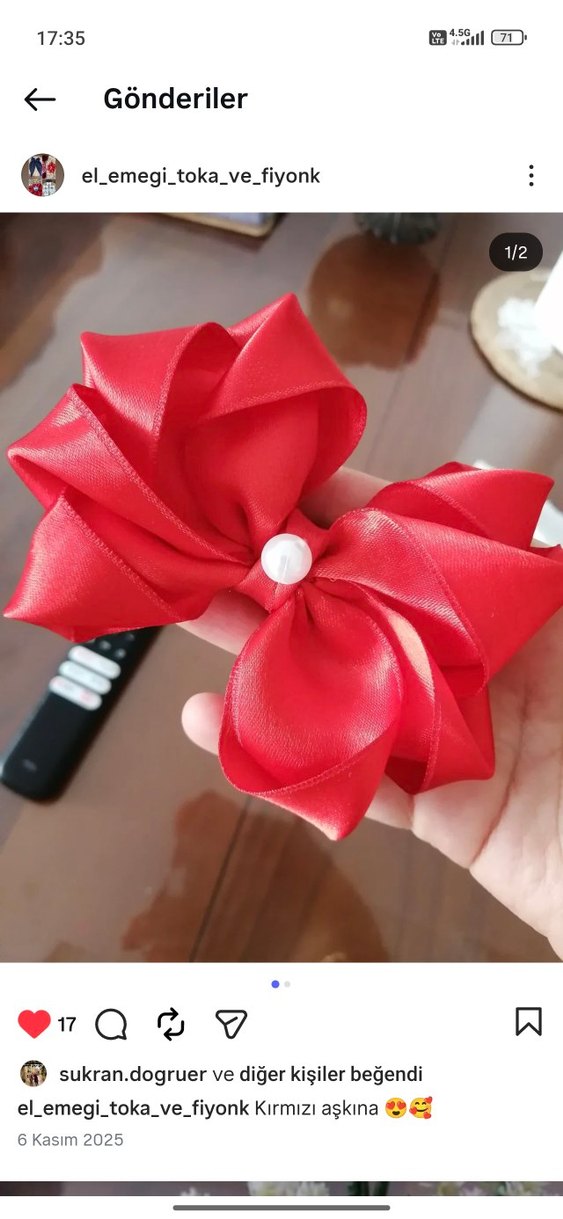 Kırmızı renkte, inci detaylı büyük fiyonk süslemeli çocuk saç tokasıdır.