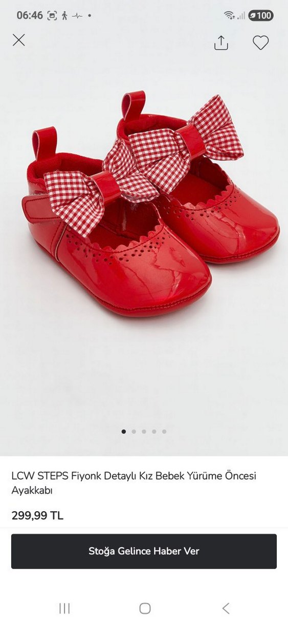 Yumuşak kauçuk malzemeden yapılmış, ekose fiyonk detaylı kırmızı kız bebek yürümeye başlamadan önce ayakkabısı, rahat ve renkli. hiç kullanılmadı 18 numara