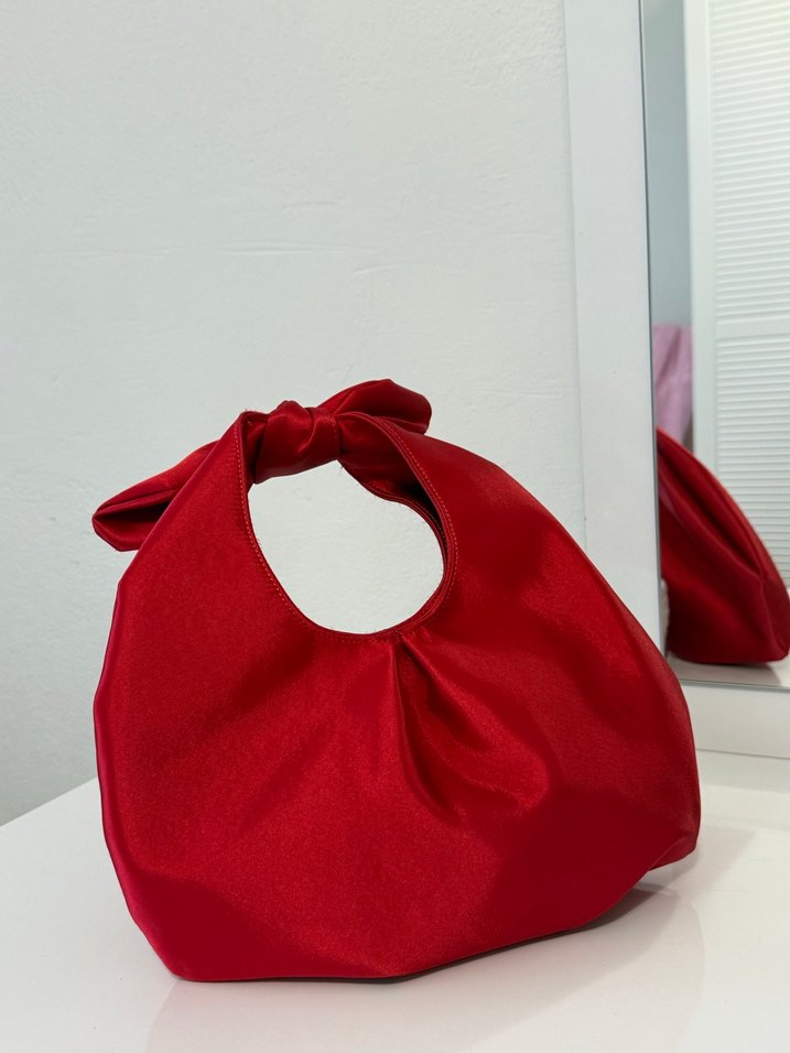 Parlak kırmızı renkte, fiyonk detaylı, minimalist tasarımlı kadın çantasıdır. Pürüzsüz sentetik kumaştan üretilmiştir ve günlük kullanıma uygundur.