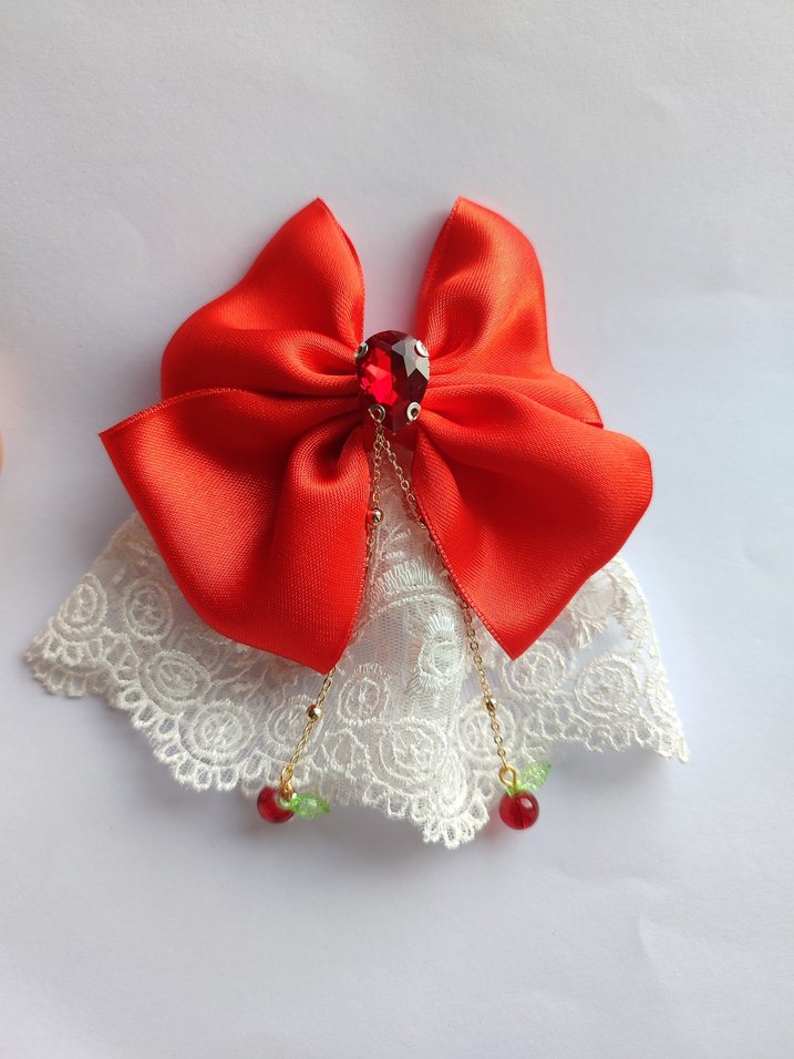 Kırmızı fiyonk ve dantel detaylı, klasik ve şık bir görünüm sunan saç tokası. El emeğimle hazırlanmistir .
