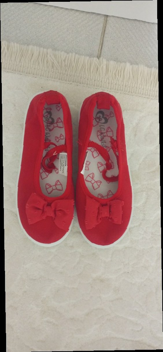Kırmızı renkte, fiyonklu ve kauçuk tabanlı kız çocuk babetleri, sade ve renkli sokak stiliyle tasarlanmıştır.