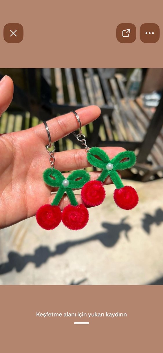 Kırmızı Fiyonklu Mini Kiraz anahtarlık