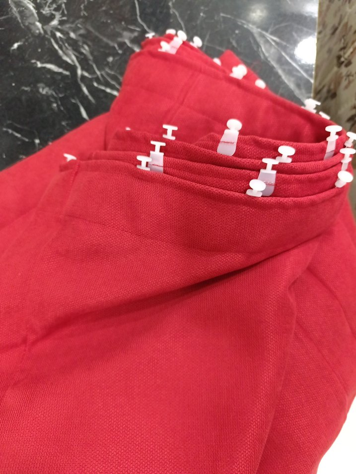 Yumuşak ve dayanıklı kumaştan üretilmiş, desensiz kırmızı fon perde en 270 boy 200 güneşlik gibi düz dikilmis