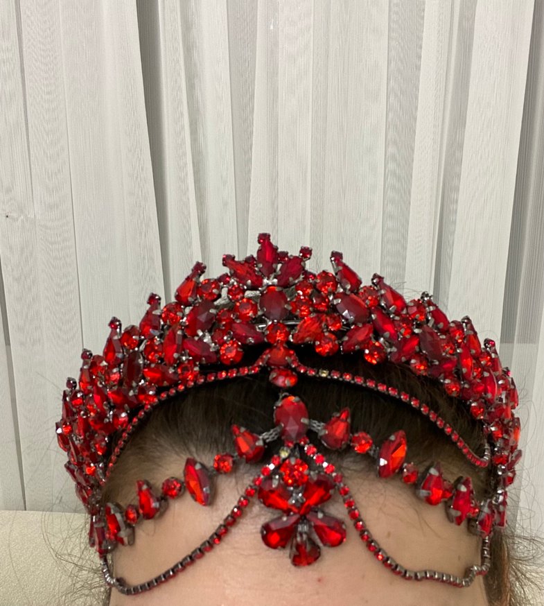 Kırmızı renkte gelin kına tacı sadece kına girişinde bir saatlik kullandım