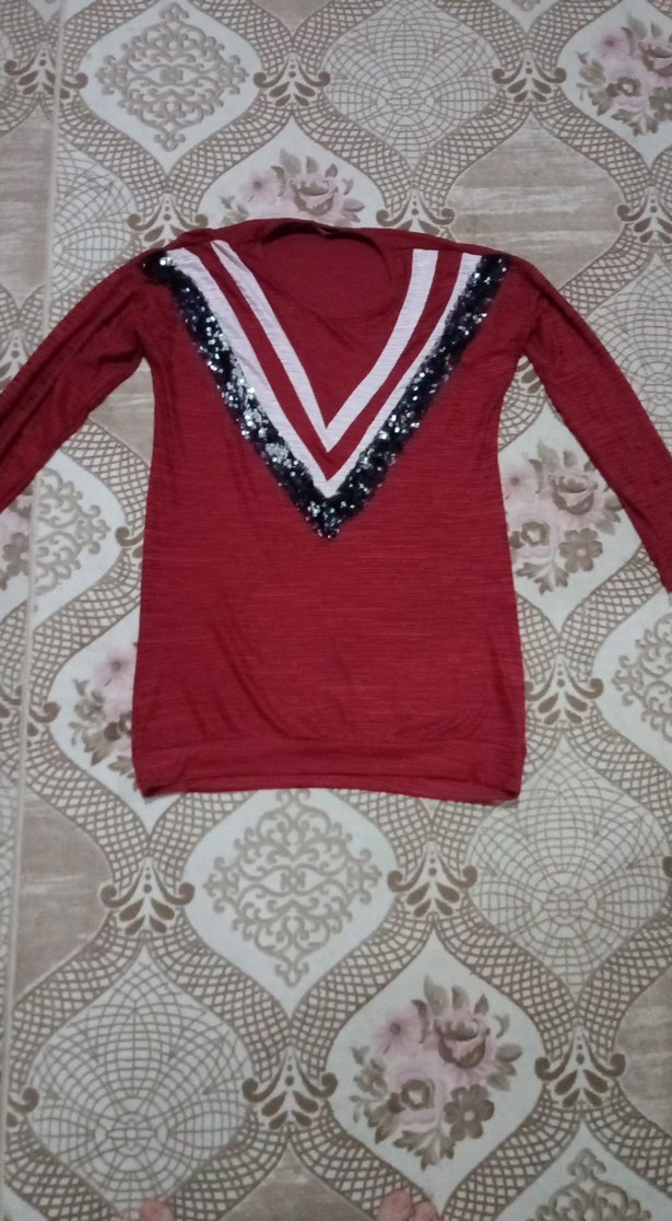 Kırmızı geniş Yaka Uzun Kollu Triko Kazak