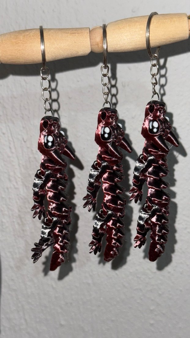 Canlı kırmızı renkte gotik tarzda iskelet figürlü anahtarlık, rock ve grunge punk tarzına uygun. Anahtarlarınıza dikkat çekici bir hava katar.