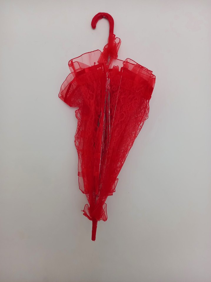 Şeffaf kırmızı kanopisi ve gotik tarzı ile kadın şemsiyesi, avant-garde ve canlı renklerle tarzınızı tamamlar.