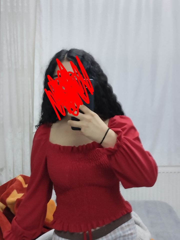 Kırmızı Gotik Uzun Kollu Kadın Bluz