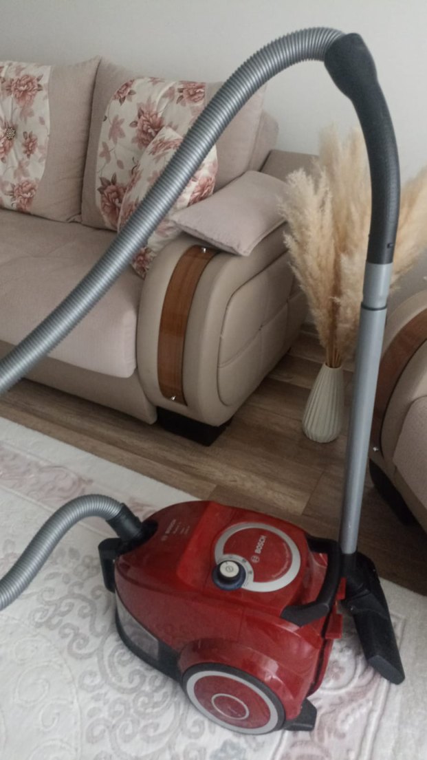 Kırmızı gövdesi ve esnek gri hortumu olan elektrikli süpürge, rahat kullanım için üstte kontrol düğmesine sahiptir. Boşver marka dikey aldığımdan dolayı satılıktır sorunsuz alıcısına hayırlı olsun şimdiden