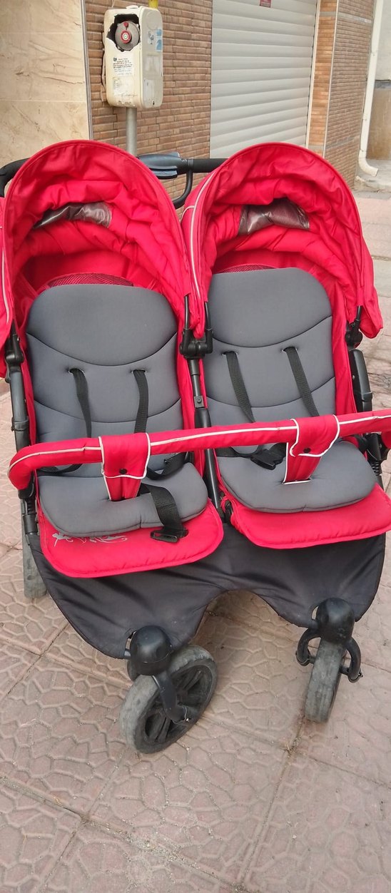 Kırmızı Gri Çiftli Bebek Arabası
