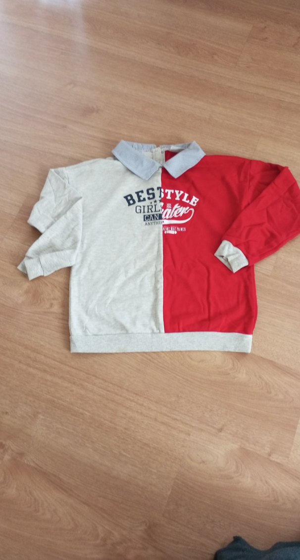 Kırmızı Gri Düğmeli kız çocuk Sweatshirt