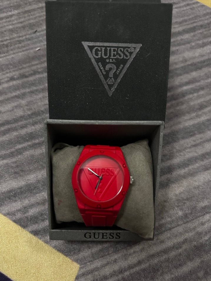 Kırmızı renkte, bel kemerli Guess kadın kol saati, minimalist ve sokak stiline uygun tasarıma sahiptir. ⌚kullanıma bağlı çizimler olabilir az kullanıldı hiçbir sorunu yok kullanmadığım için pili bitmiş sadece sorunsuzdur orijinaldir koddan kontrol edebilirsiniz