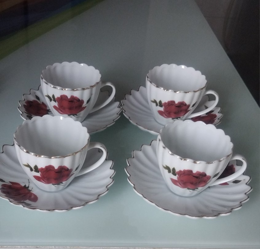 Kırmızı Gül Desenli Beyaz Porselen Fincan Takımı