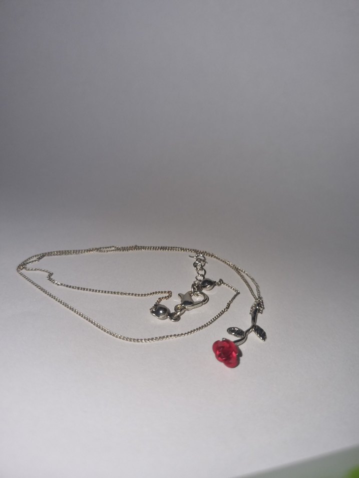 Kırmızı Gül kolye 45 cm uzunluğunda ince zincir
