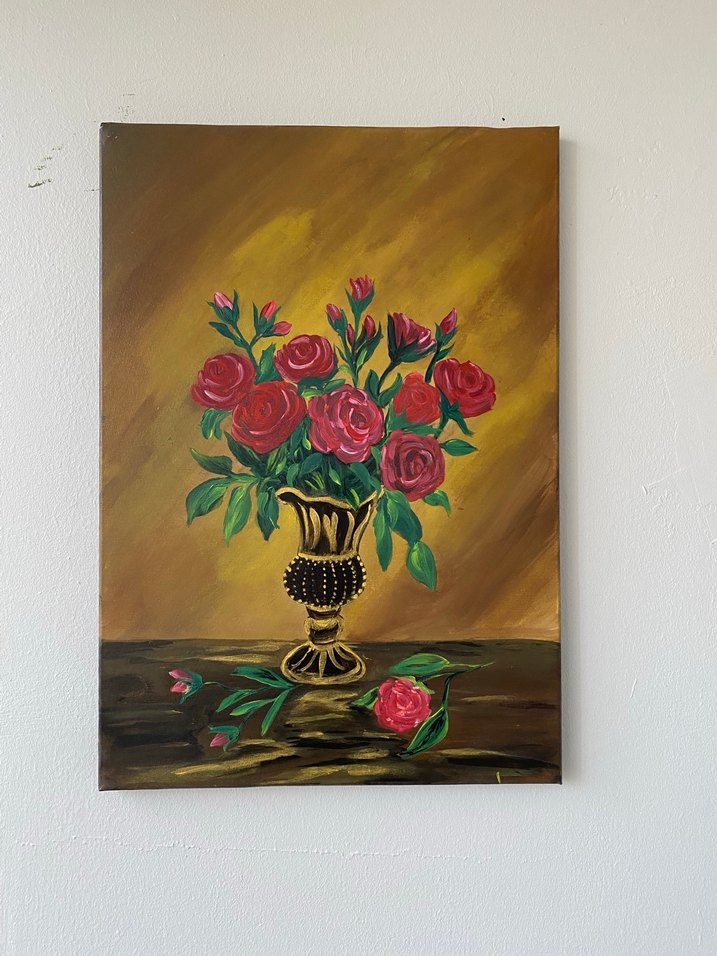 Kırmızı Güller ve Vazoda Natürmort Tablo35/50