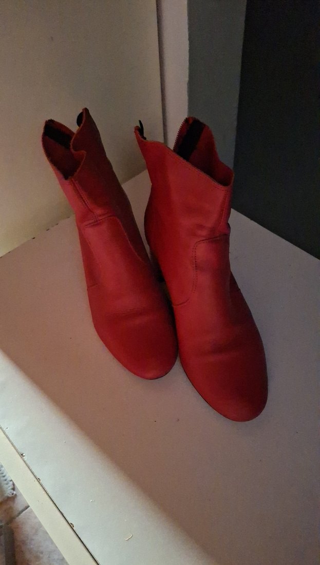 kırmızı hakiki deri kadın topuklu bot, desen içermeyen şık tasarımıyla zahmetsiz şıklık sunar. Günlük kullanım için uygun.