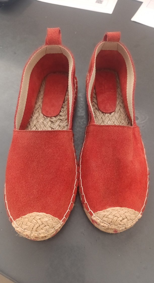 Kırmızı süet dolgu topuklu espadril minimalist bohem tarzıyla. Renkli ve desensiz, günlük kullanıma uygun zahmetsiz şıklık sunar. hiç kullanılmadı küçükgeldiği için satıyorum