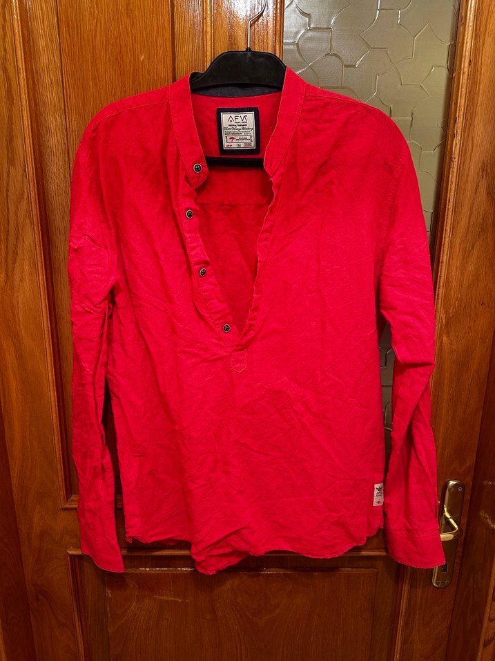 Kırmızı hakim yaka Uzun Kollu Erkek Gömlek