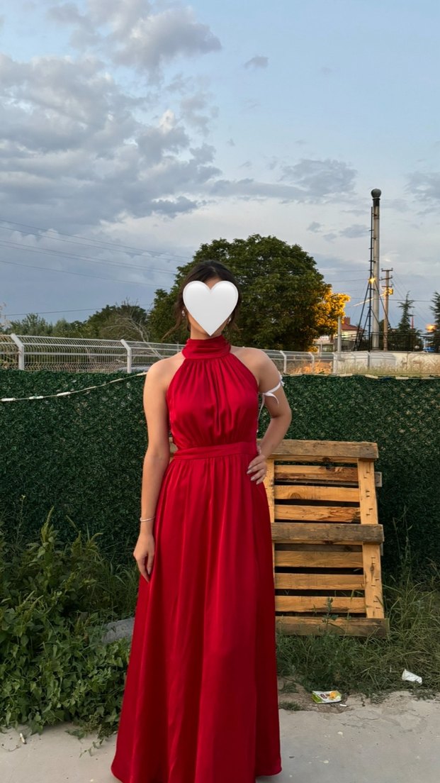 Kırmızı halter yaka saten elbise
