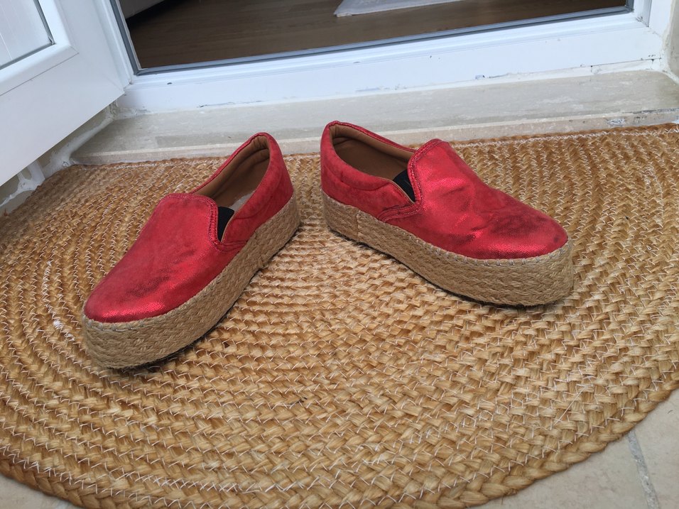 Parlak Kırmızı renk hasır dolgulu ayakkabı, 37 numara, tam kalıptır, Trendyoldan alınmıştır. İade kabul etmiyorum alacak olan kişiye hayırlı olsun.