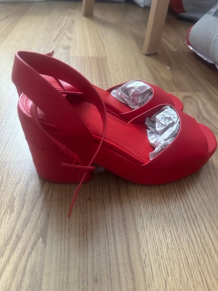 Kırmızı hasır topuklu sandalet