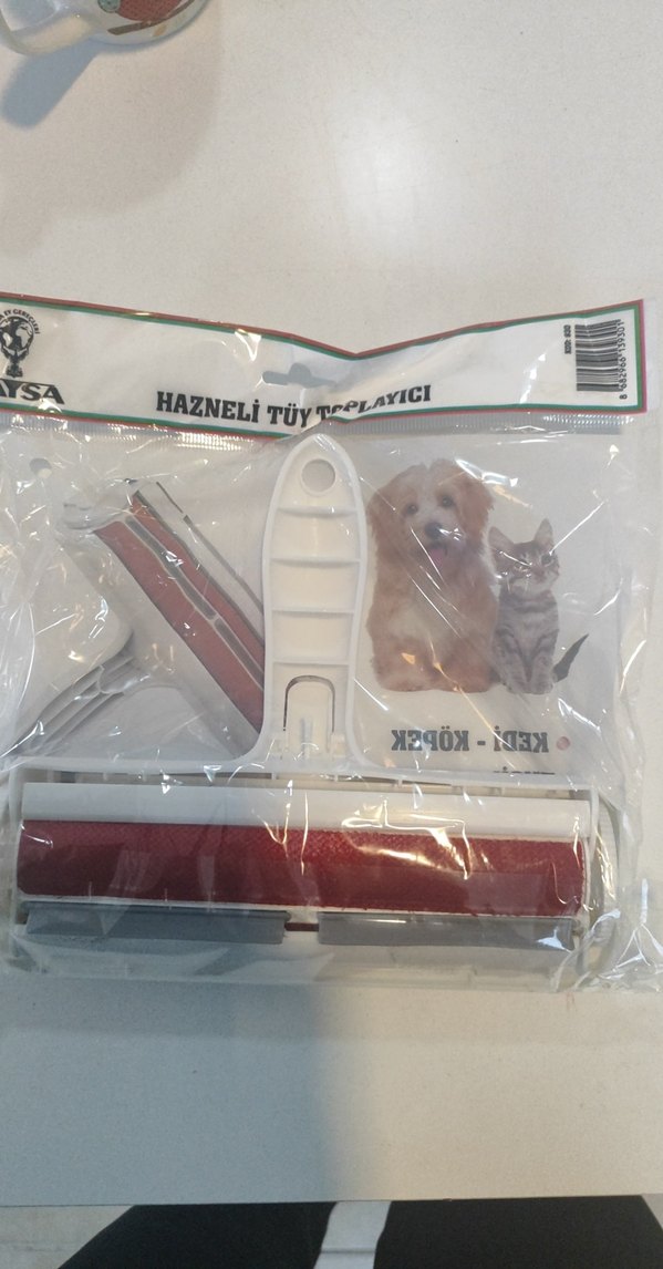 Kırmızı hazneli tüy toplayıcı, kedi tüylerini etkili şekilde temizlemek için tasarlanmıştır. Kullanımı kolay sapı vardır.