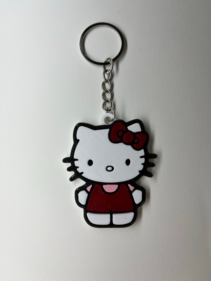 Renkli ve tokalı kırmızı Hello Kitty anahtarlık, minimalist ve pop kültür tarzını yansıtır, rock punk havası verir.