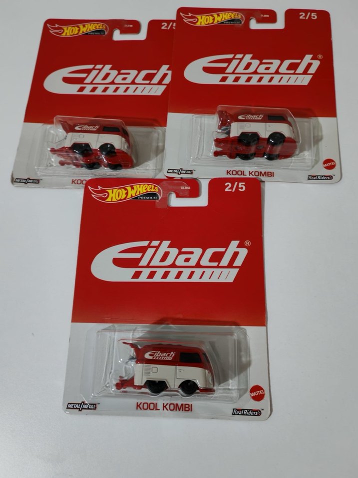 Kırmızı Hot Wheels oyuncak araba, Eibach logosu ve KOOL KOMBI etiketiyle. 2/5 serisinin bir parçası.